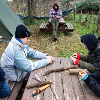 Il primo passo è stato quello di lasciare ai genitori orologio e cellulare, per iniziare a dare ascolto al proprio corpo al ciclo biologico e comprendere il piacere del parlare, dialogare e confrontarsi insieme all’altro. Siamo entrati nella Riserva di Michele Lupoli, sopranominato il “Guru” dai ragazzi, il quale ha spiegato i componenti e come montare le tre tende da campo. Armati di torce, unica fonte di luce, sono stati capaci di montarle in poco più di due ore. Il passo successivo è stato quello di accendere il fuoco, necessario per riscaldarsi e cucinare. Dotati di coltello, acciarino e iuta, è iniziata la lunga notte, visto che alle cinque del mattino sono riusciti ad accenderlo e hanno cucinato il primo piatto caldo.